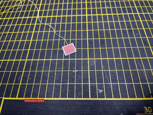 Und dann kamen die Stückpfortendeckel. Die will ich auf jeden Fall mit dem Tau zum Öffnen der Luken darstellen; wie ich das realisiere, zeigen die Bilder.