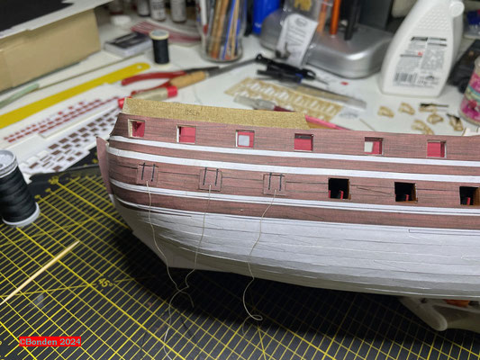 Es sind reichlich Stückpfortendeckel zu bauen und anzubringen; am Ende sieht es dann aber richtig gut aus, wie ich finde.