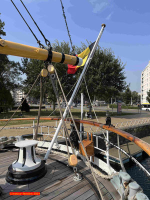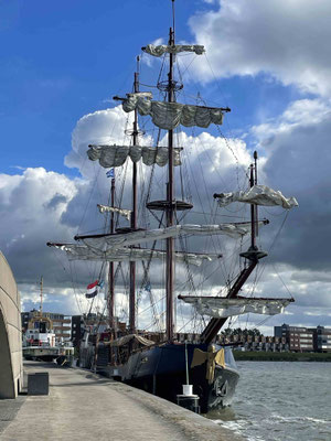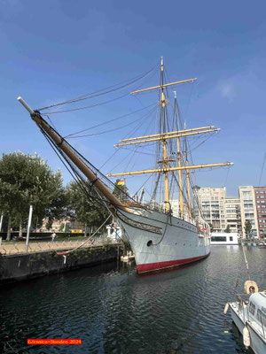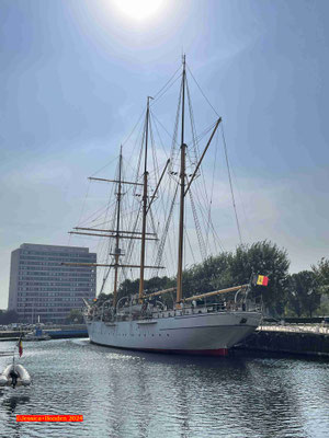 Es gäbe noch viel über die schönen Tage am IJsselmeer zu berichten, aber hier soll es ja nur um Schiffsbegegnungen gehen. Also kommen wir nun nach Belgien. Dort war es der Ort Oostende an der Nordsee, wo es wieder ein schönes Schiff zu sehen gab. Dort liegt das ehemalige belgische Segelschulschiff Mercator - und diese Dreimastbarkentine ist schön wie eh und je. Und als Kartonmodellbauer kam ich nicht an dem Modellbaubogen vorbei...