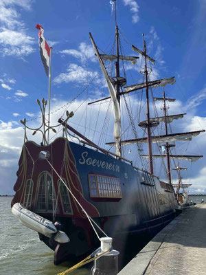Der Dreimaster entpuppte sich dann als die Soeverein, ein - man möge mir meine Direktheit verzeihen - echt gruseliger Kahn, der sich vermutlich in jedem Disneypark gut macht, aber mehr eben auch nicht.