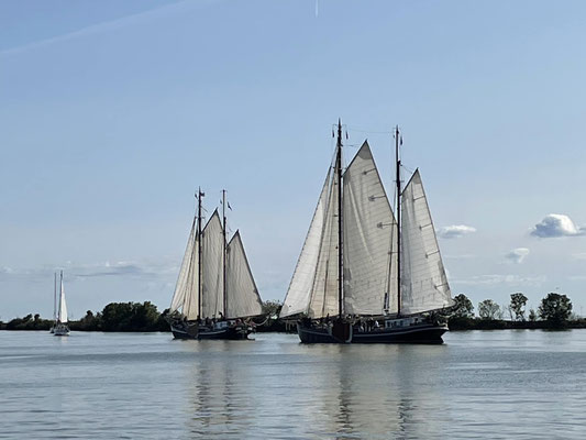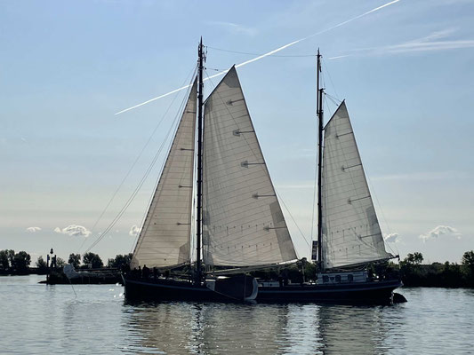 Bei einer Fahrt einmal rund um das IJsselmeer konnten wir in Enkhuizen das Auslaufen von vielen Plattbodenschiffen bestaunen; es war Sonntag, und offenbar wollten ganz viele Menschen raus aufs Wasser. Und auch die Fortuna legte später noch ab.