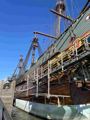 Am nächsten Tag ging es dann zur Bataviawerft. Über diesen Besuch habe ich ja bereits an anderer Stelle etwas erzählt und gezeigt (siehe Baubericht der Zeven Provencien), aber hier dann gerne noch ein paar mehr Bilder von der Batavia - auch im Vergleich zu denen, die hier in den Schiffsbegegnungen von zwei früheren Besuchen stammen.